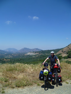 87km, 40°C et un vent de face qui ne nous laisse pas avancer, même en descente. 20km sur des boulevards pour sortir de Vegas, puis une jolie petite route le long du Lake Mead, survolée toute les 5 minutes par des avions remplis de flambeurs. Ensuite la bande d'arrêt d'urgence de l'autoroute, et ce jusqu'à demain soir, si le vent nous laisse un peu de répit. Malgré tout, on trouve encore la force de se rajouter un petit col pour le réveil, en descendant camper le long du Colorado.